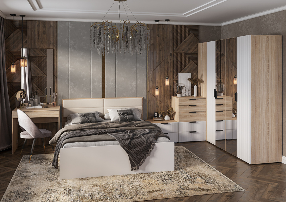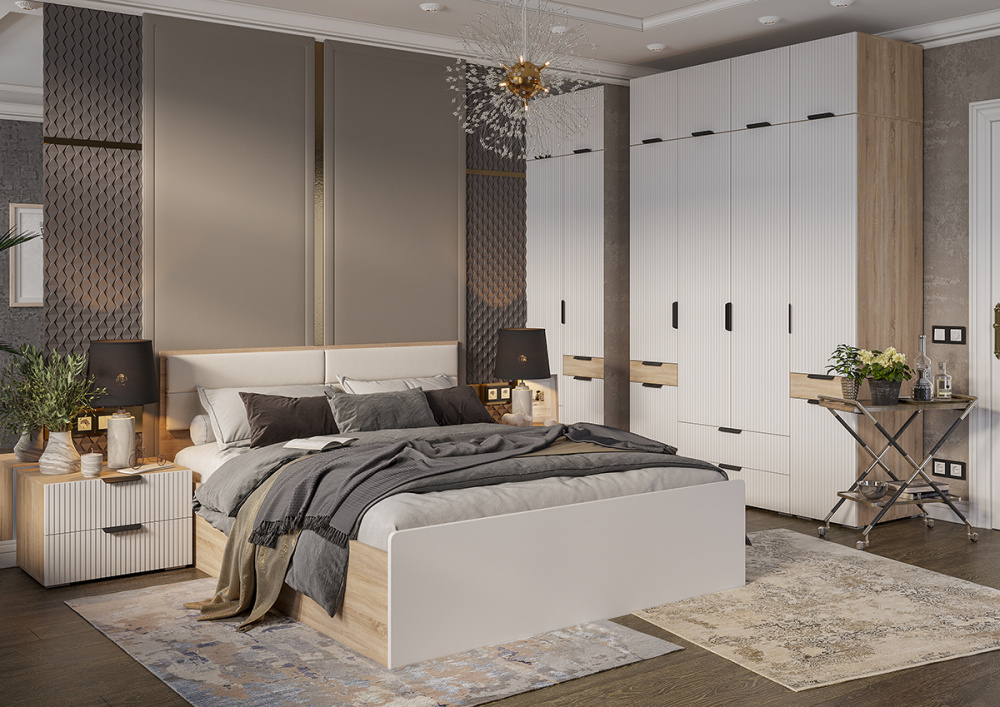 Кровать с подъемным механизмом из модульной коллекции Норд. Изголовье декорировано экокожей.Материал фасада МДФ
