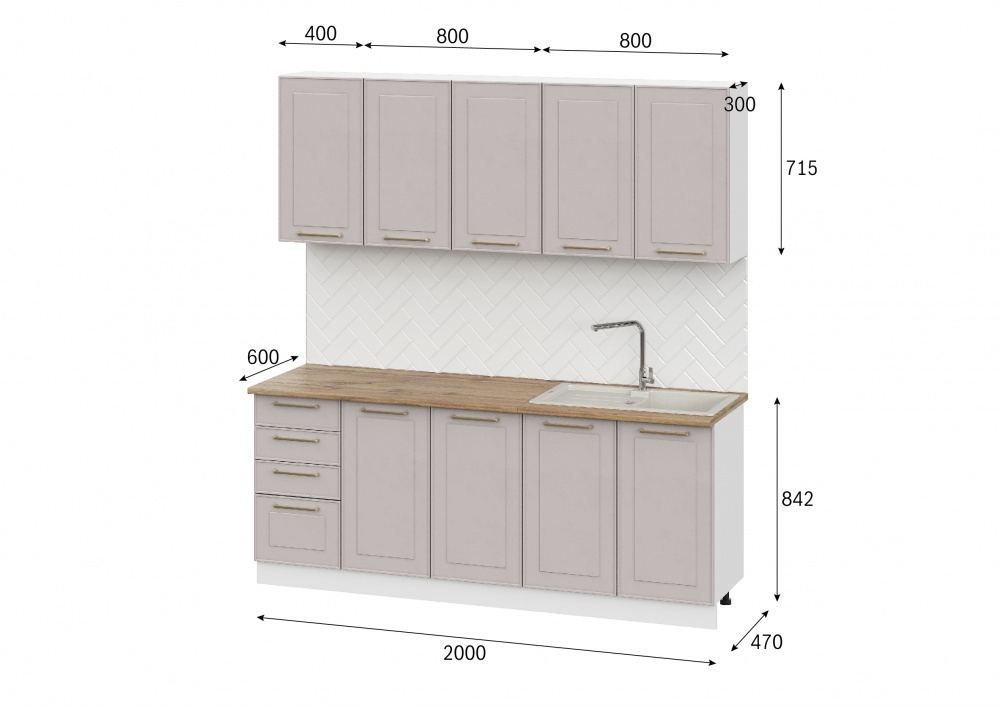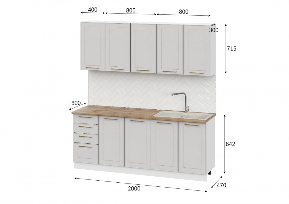 Кухонный гарнитур Милена — практичный комплект длиной 2,0 метра в современном стиле