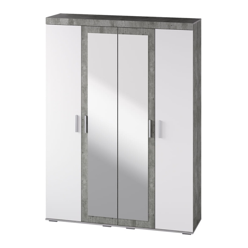 Современный четырёхстворчатый шкаф Инстайл выполнен в стиле одноименной модульной коллекции мебели. Модель состоит из четырех дверок, две из которых – зеркальные. Изделие выполнено в комбинации белого глянца и ЛДСП цвета метрополитан грей.