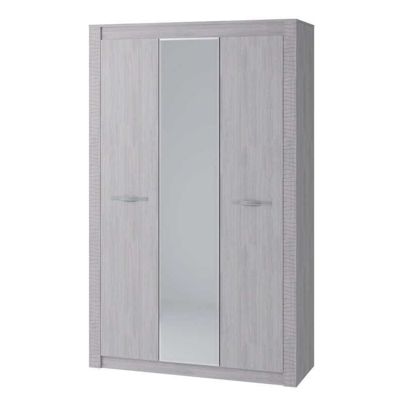 Для создания модели используется качественная ЛДСП цвета белого ясеня. Центральная створка является полностью зеркальной, две остальные дополнены изящными ручками.