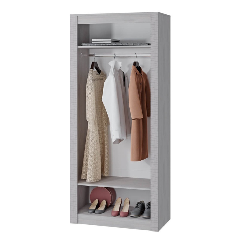 Двухстворчатый шкаф Монако относится к одноименной модульной серии. Модель не имеет вычурного декора и лишних деталей, выполнена в сдержанном и лаконичном стиле. Комплектация шкафа представляет собой ниши для хранения вещей в сложенном виде, а также отделение с хромированной штангой для одежды на вешалках.