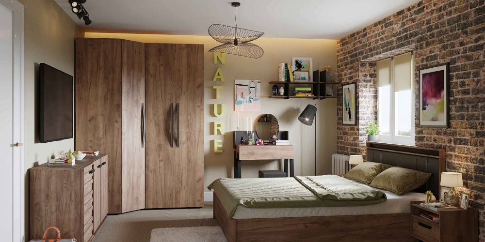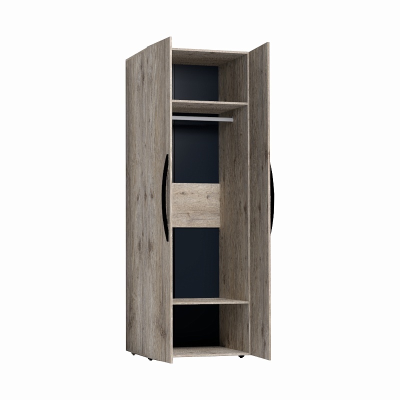 Классический шкаф в спальню из серии Nature. Модель комплектуется стационарной штангой длиной 757 мм, на которой можно разместить до 10 плечиков с верхней одеждой, а также двумя полками.