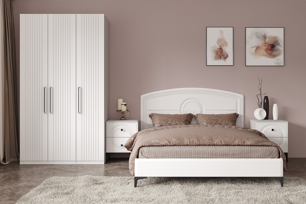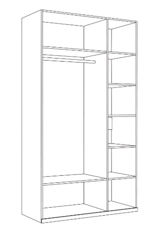 Шкаф оснащен закрытыми полками и стационарной штангой для вешалок. Фасады изготовлены из МДФ с матовым ПВХ-покрытием.