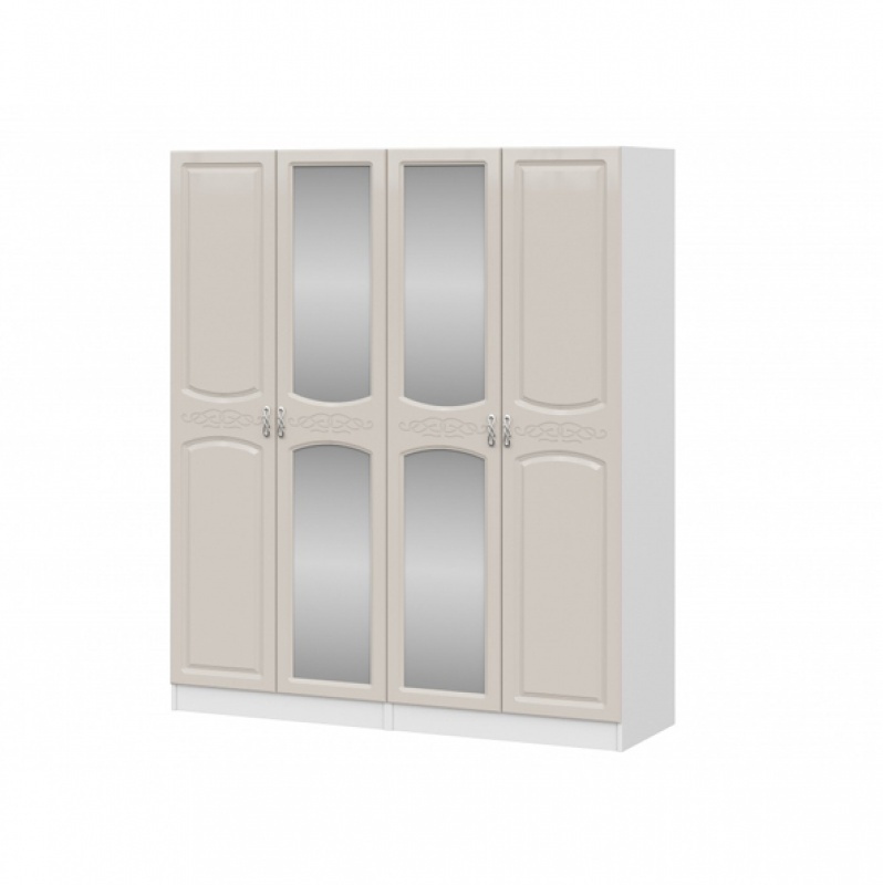 Большой шкаф в спальню из коллекции Венеция. Модель состоит из двух двустворчатых шкафов. Комплектуется горизонтальной штангой. Ручки сделаны из металла. Зеркало в комплекте.